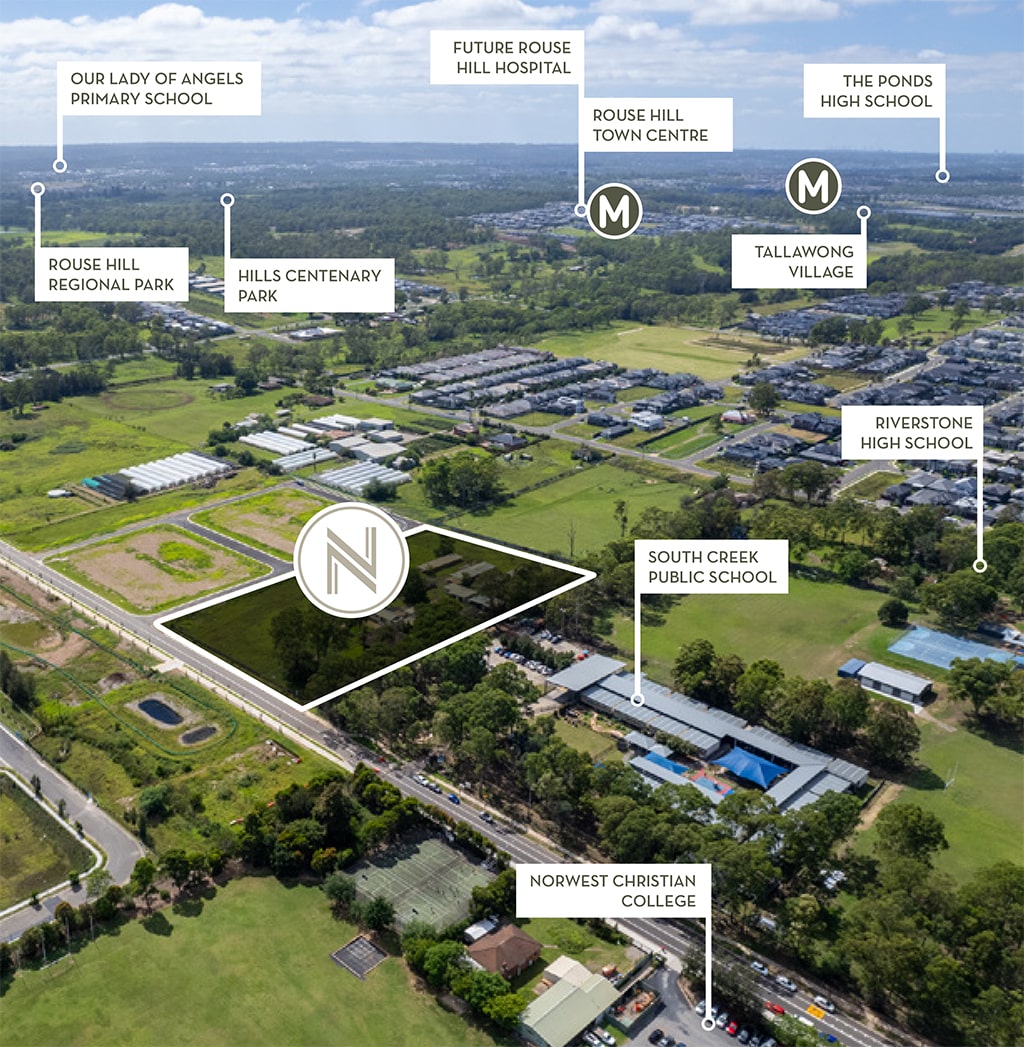 Nestled in a prime location, the Riverstone estate is surrounded by an array of current and upcoming amenities. Strategically located near private and public schools, future council reserve, and sports fields, it also provides easy access to key locations such as Rouse Hill Town Centre, Riverstone, and Tallawong Train stations.